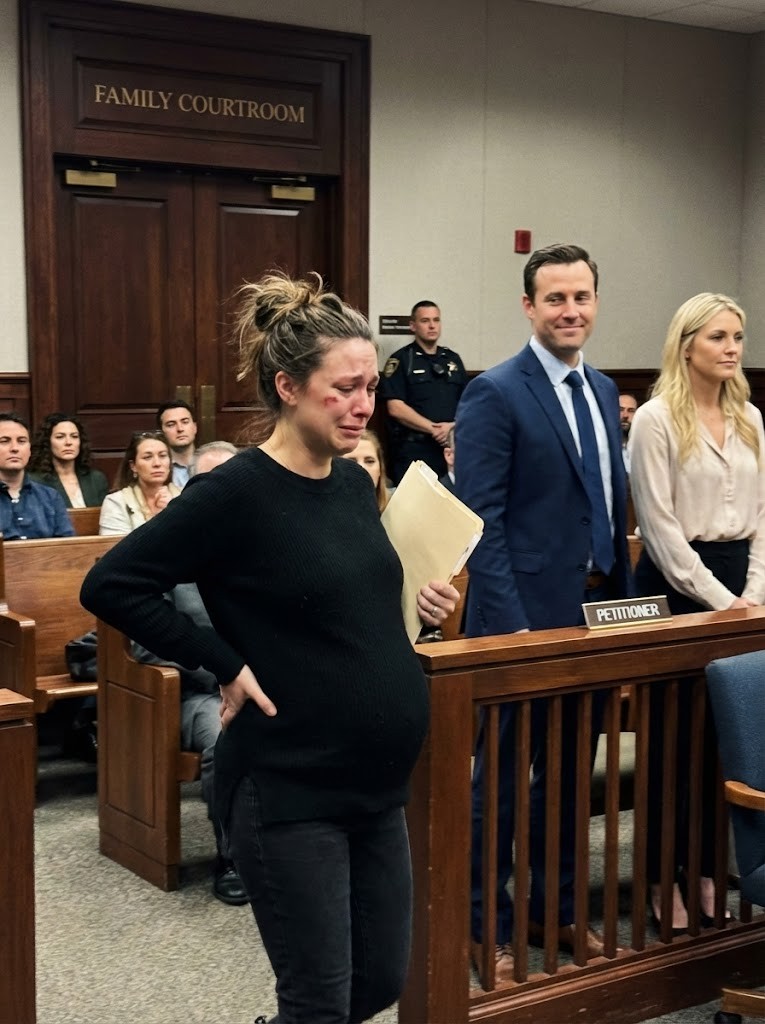 The courthouse felt colder than the November air outside—clinical, detached. The kind of cold that seeps into your bones when you realize no one here knows what you’ve endured, and fewer still would care. One hand supported my aching back. The other clutched a manila folder stuffed with medical bills, ultrasound photos, and messages I’d never dared submit as evidence.