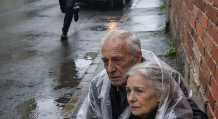 The woman was sitting on a sodden cardboard box. Her hands were blue-veined and shaking, clutching a small, rectangular object to her chest as if it were a holy relic. Beside her stood an old man, his spine curved like a question mark, holding a thin, cheap windbreaker over the woman’s head. He was shivering so violently that Matthew could hear the rhythmic clicking of teeth from behind the glass.