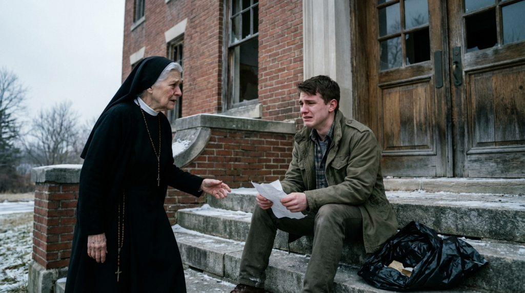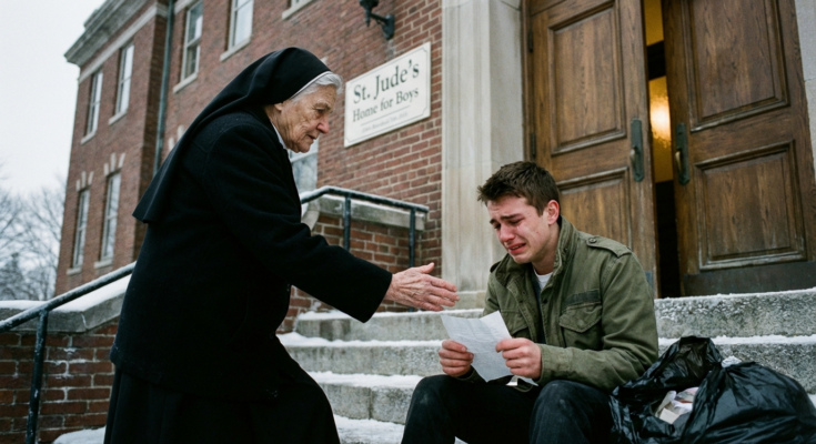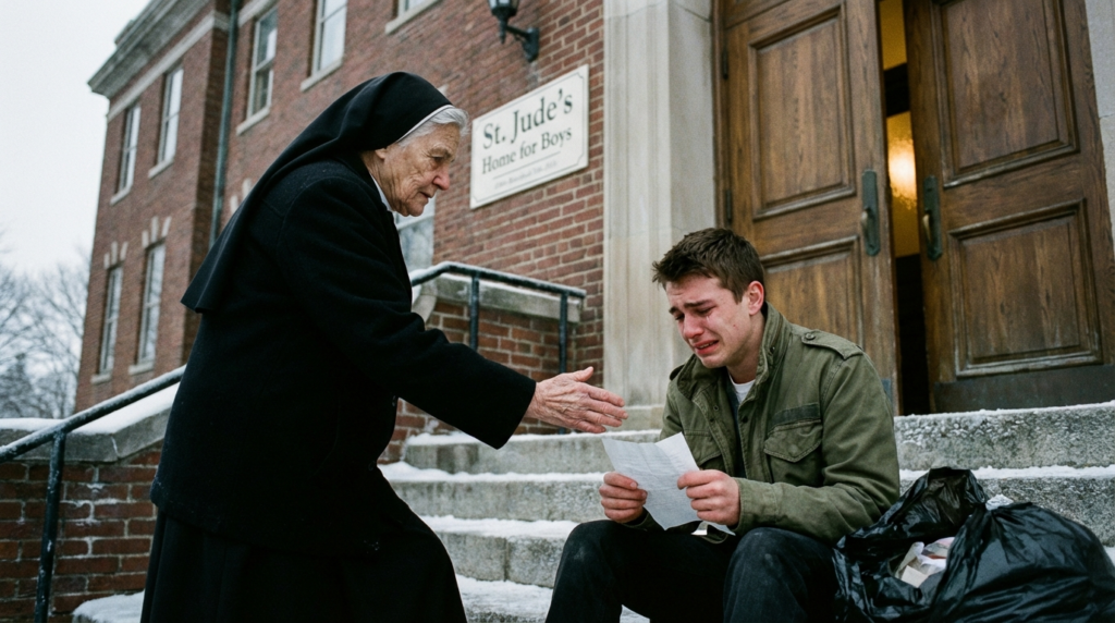 I stood outside St. Jude’s Home for Boys, my entire life stuffed into a trash bag, when the massive wooden doors creaked open. I expected a stern administrator or a social worker with a clipboard. Instead, an 80-year-old nun—barely five feet tall, with silver hair and eyes like weathered steel—stepped onto the stone steps.