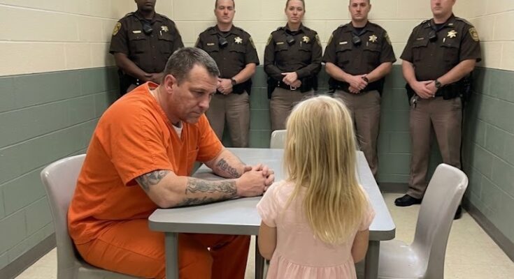 Three hours later, a white state vehicle pulled into the prison lot. A social worker stepped out, holding the hand of an eight-year-old girl with blonde hair and solemn blue eyes.