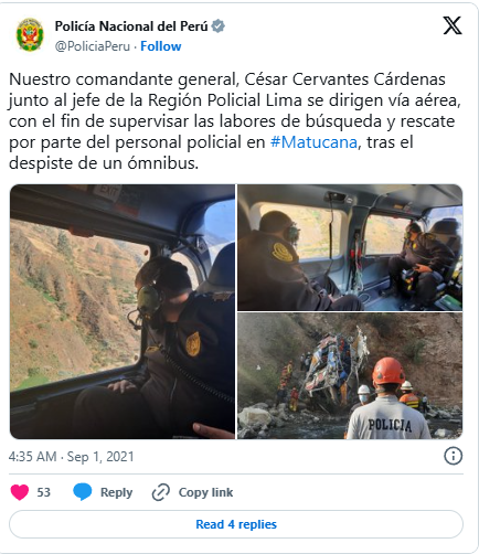 Regarding the death toll, the National Police reported Tuesday that there were at least 17 people, and hours later, the death toll rose. So far, according to Colonel Manuel Lozana, head of the Highway Police, the death toll has reached 33.