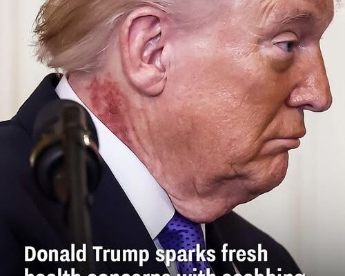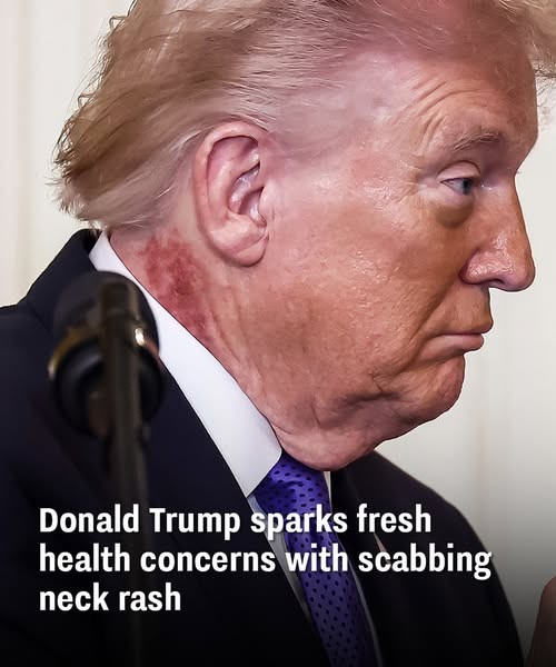 President Donald Trump has once again sparked concern among Americans about his health after he was seen with an angry, scabbing rash on his neck at a Medal of Honor ceremony on Monday.