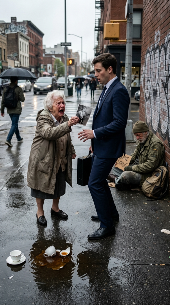 “Move, grandma,” Tyler sneered, wiping mud off his expensive trousers. “I’m calling the cops to have this garbage hauled away. He’s a public nuisance.”