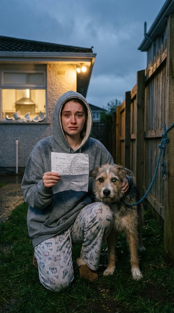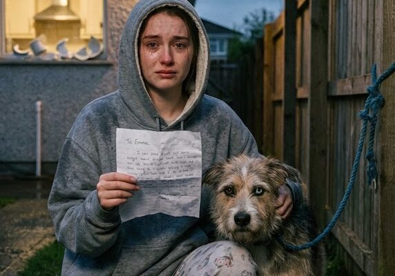I sat there in the wet grass, rain soaking through my thin pajamas, note crumpled in my fist, this stranger-dog pressed against me like he was afraid I’d disappear.