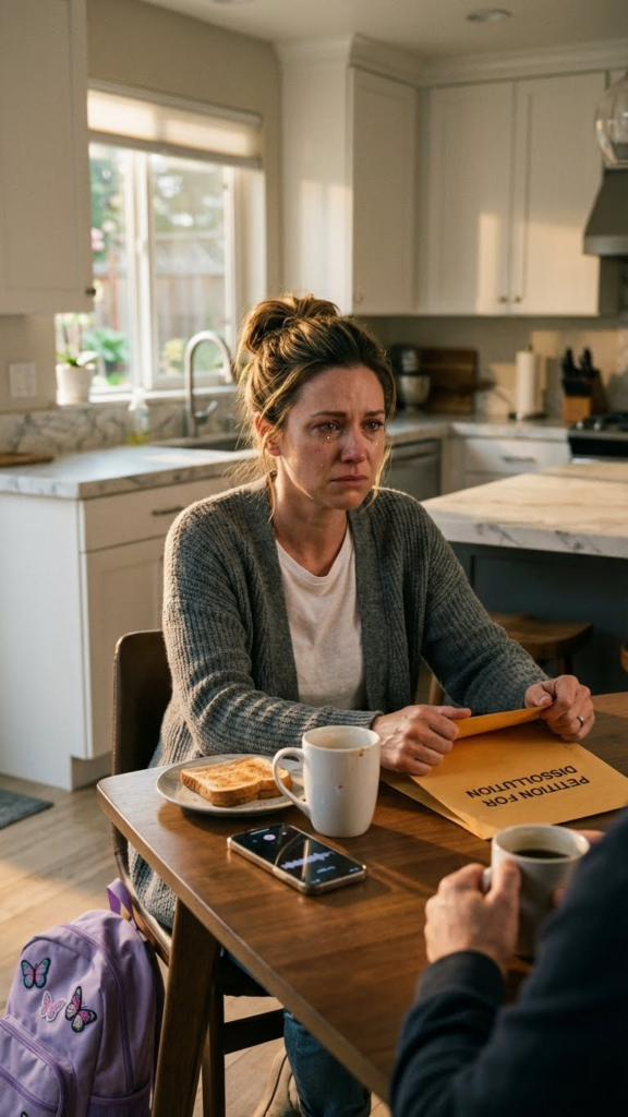 The divorce papers sat on our kitchen table between the cold coffee and my daughter’s untouched breakfast.