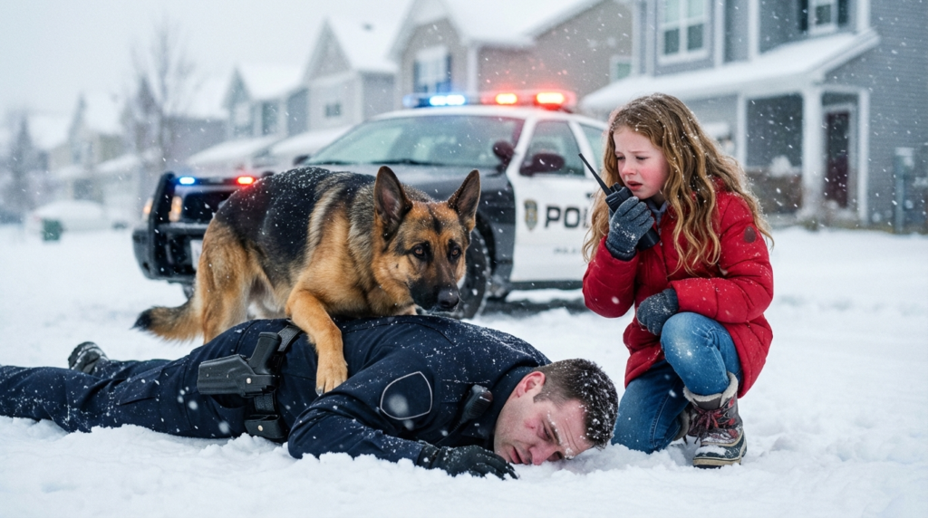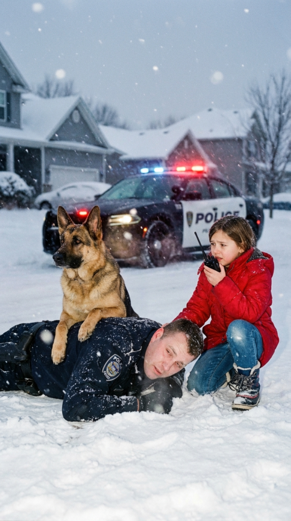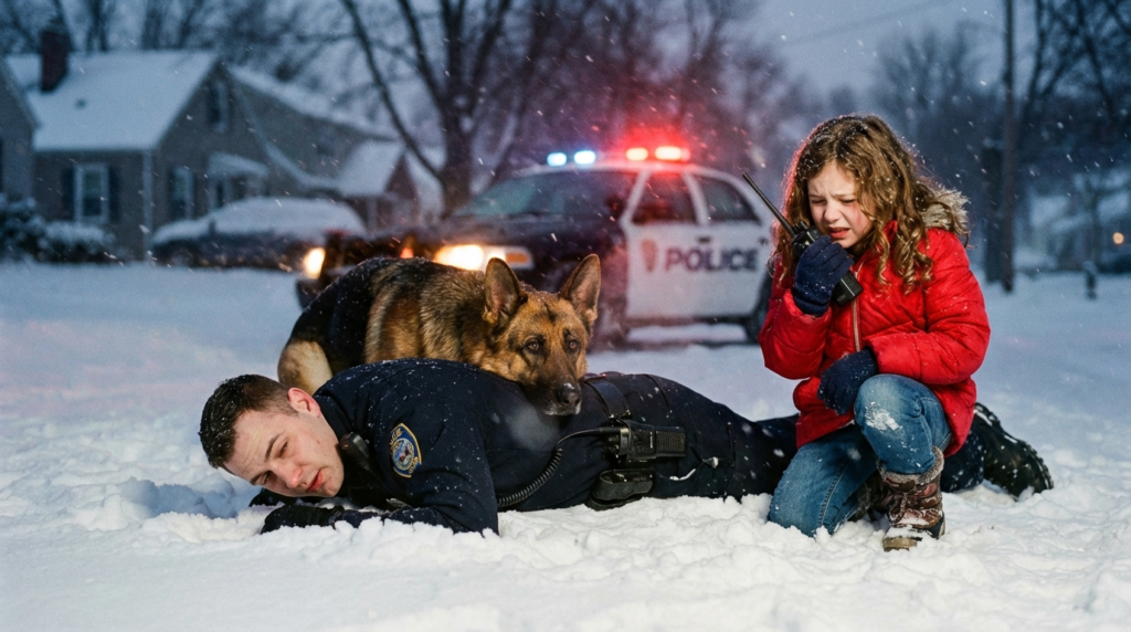 “Hello?” Her voice crackled over the radio. “This is Emma Rodriguez at… um… I live at 2847 Maple Street. There’s a police man in the snow and he looks really sick. His dog is here too. Please come fast.”