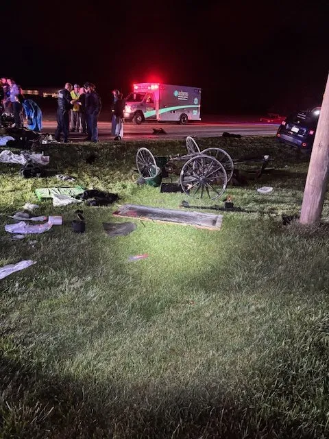 BERNE, Indiana — A late-night collision on State Road 218 turned a peaceful rural road into a chaotic emergency scene after a Jeep struck a horse-drawn Amish buggy, throwing nearly everyone out of the vehicle and sending multiple people to hospitals. First responders were called to the crash at about 11:20 p.m. on October 7; when they arrived they found a badly damaged buggy scattered across the pavement and a Jeep in a ditch.