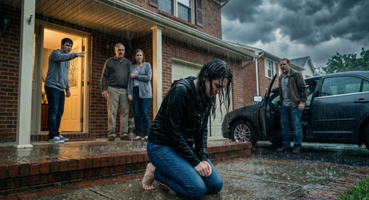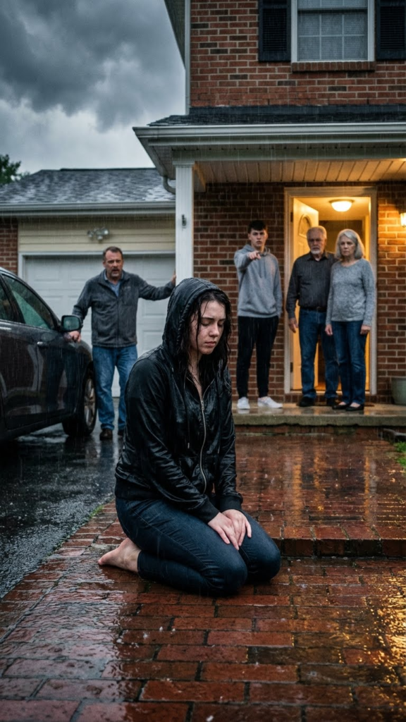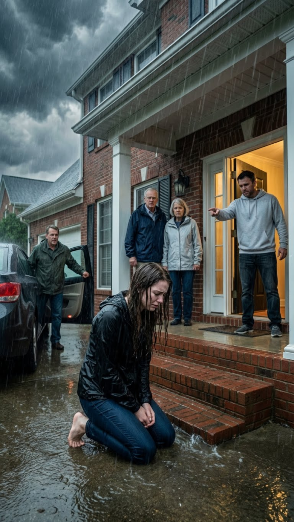 The cold rain hammered down on my bare knees as I knelt on the brick steps of my fiancé’s family home, and not one person under that porch offered me shelter.