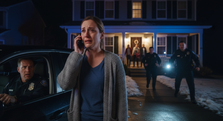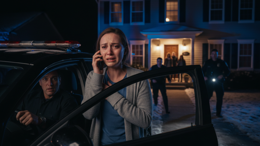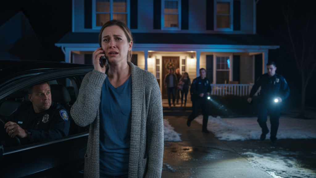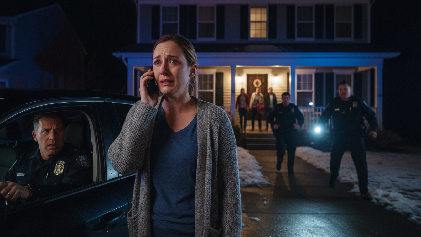 The police arrived faster than I expected. Red and blue lights flooded the yard, bouncing off the windows, turning our beige house into something unreal.
