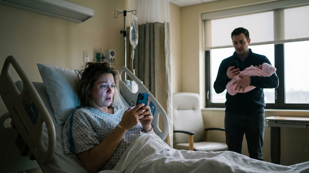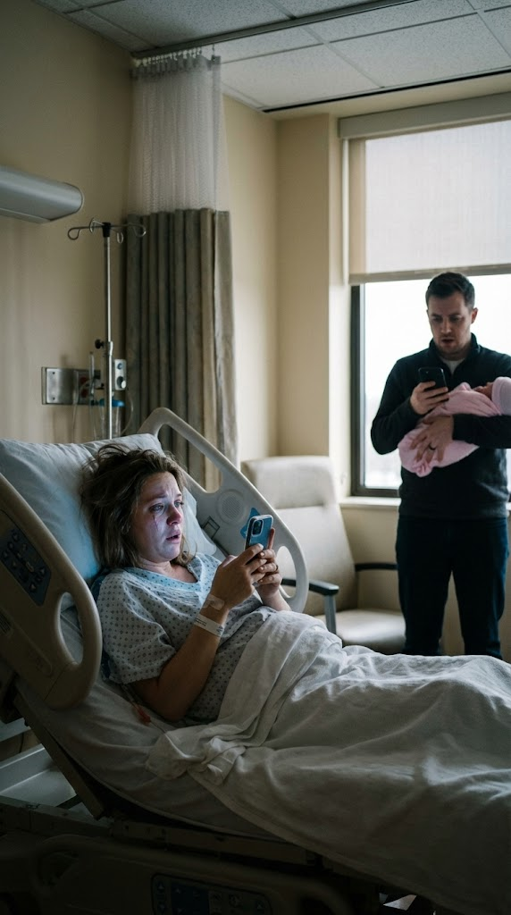 Not tears of joy—tears of confusion. He was standing by the hospital window, holding our baby girl, staring at his phone like it had just delivered the worst news of his life.