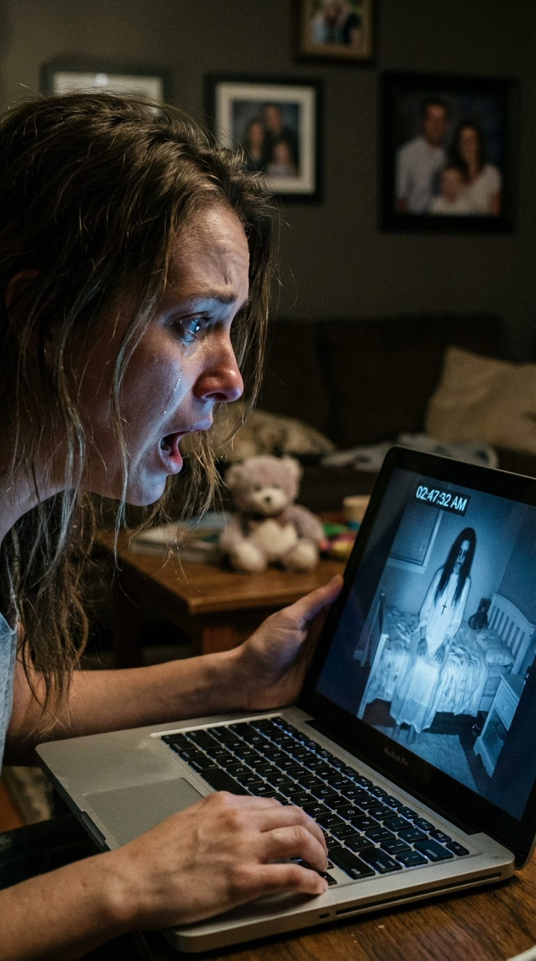 I was sitting alone in my darkened living room at 2:47 AM on a Tuesday night, watching security footage of my five-year-old son’s bedroom on my laptop, when I saw a woman walk through his locked door like it wasn’t even there.