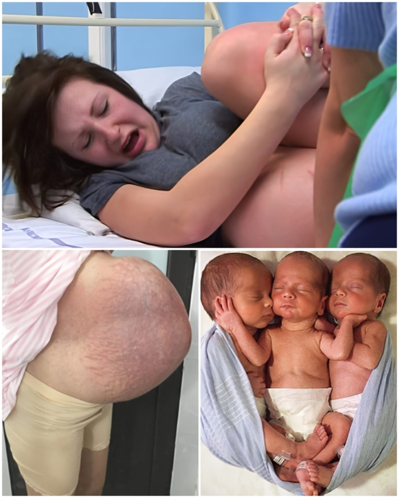 A scan two months later revealed the shock news — not one baby, but triplets.