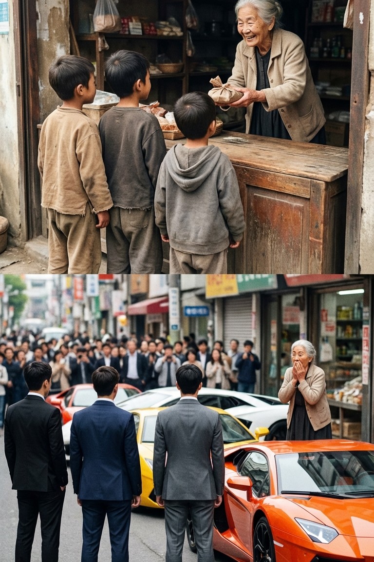Eventually, they built something extraordinary together. A business born from nothing but grit and loyalty. Success followed faster than they ever imagined. But no amount of money erased the memory of an old woman who fed them when she had nothing. They searched for her for years. Streets changed, people moved, but they never stopped looking. And now here they were standing in front of the woman who had saved them in the simplest, most profound way possible. The crowd watched in stunned silence as the men knelt before her, not in performance, not for attention, but because gratitude had weight, and they were carrying all of it.