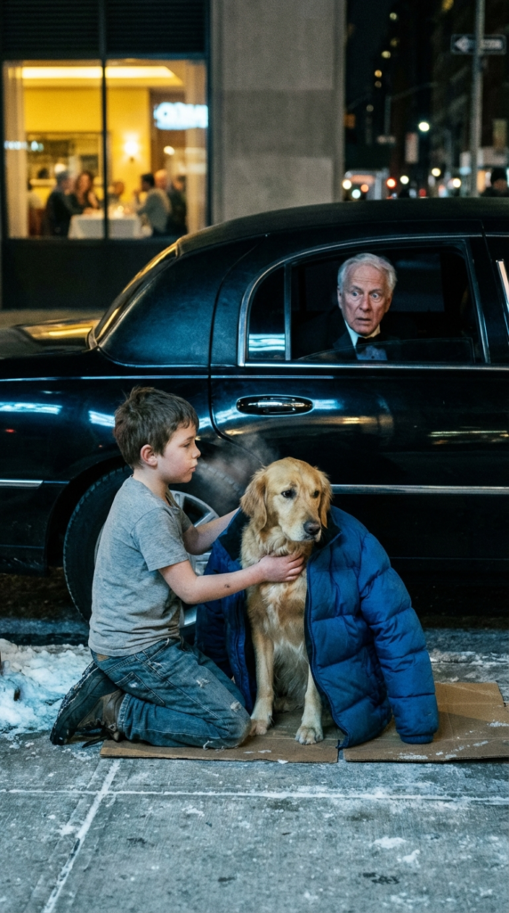 I followed his gaze. In the darkened alleyway next to the restaurant, near the steam vents that weren’t working, a stray dog was curled up on a metal grate. It was a golden retriever mix, emaciated and shaking violently, its ribs showing through matted, wet fur.
