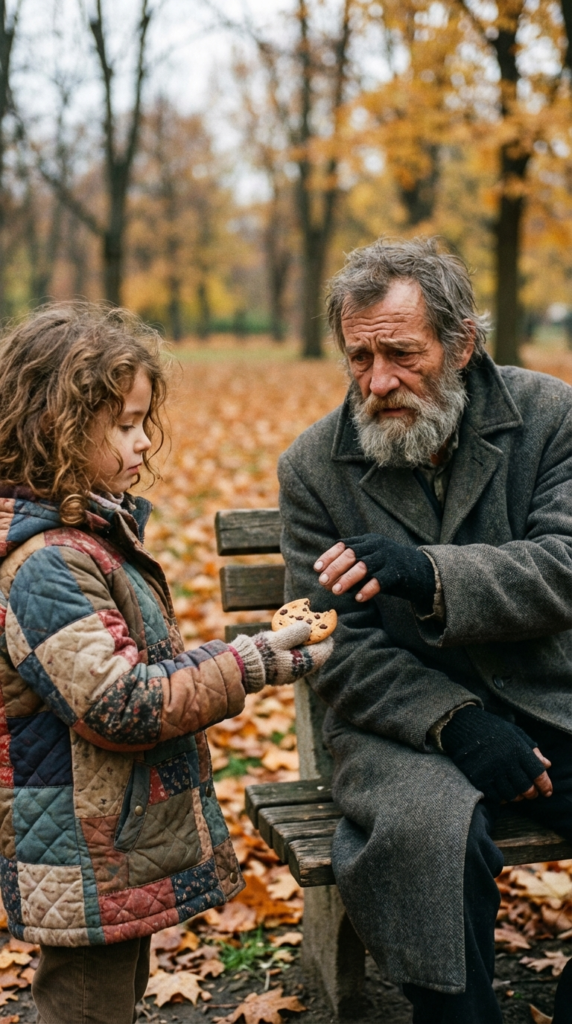Sometimes, when I walk through the park, I look at that bench. It’s empty now. But I always smile. Because I know that’s where my bad luck ended, and where a little girl with a big heart proved that even the smallest crumb of kindness can feed a starving soul.
