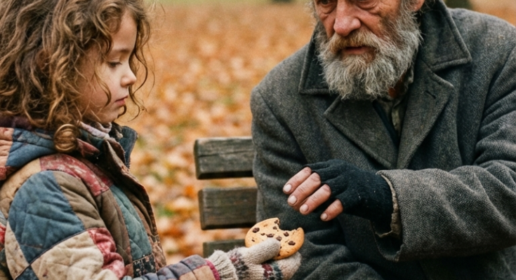 “My mommy says cookies make everything better,” Lily said, completely unafraid. She broke her cookie in half—the only treat she would have for who knows how long—and held out the bigger piece. “You look like you need the big half.”