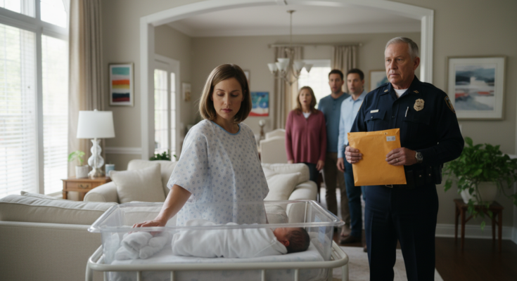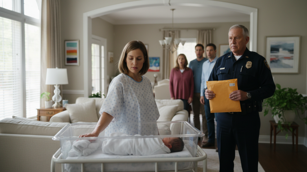 My newborn son was asleep in the clear plastic bassinet beside me, his tiny chest rising and falling in soft, steady breaths. The house was filled with the gentle chaos of family — my mother bustling in the kitchen, my father arguing with my brother about parking, my aunt rearranging flowers that didn’t need rearranging.