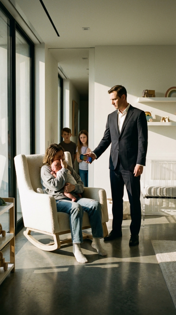 An hour earlier, the incident that sealed my fate had occurred. Alistair had made an unexpected appearance at the penthouse in the middle of a Tuesday afternoon. He walked into the nursery and found me in the rocking chair, holding six-month-old Leo against my chest. Leo had been teething, his gums swollen and angry, screaming with a raw pain that vibrated through his tiny body.
