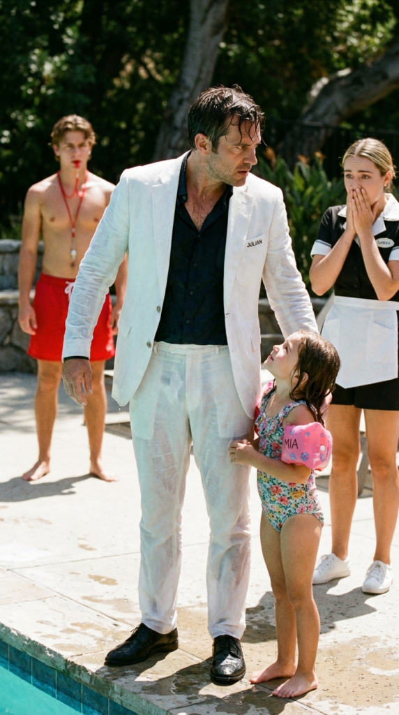 By the time I reached the water’s edge, gasping and crying, he was already surfacing. He had Mia in one arm, holding her securely. He swam to the stairs and hauled her out, his expensive Italian loafers squelching on the concrete.