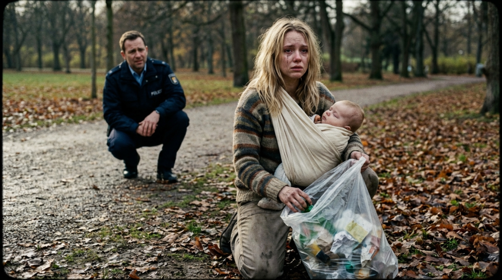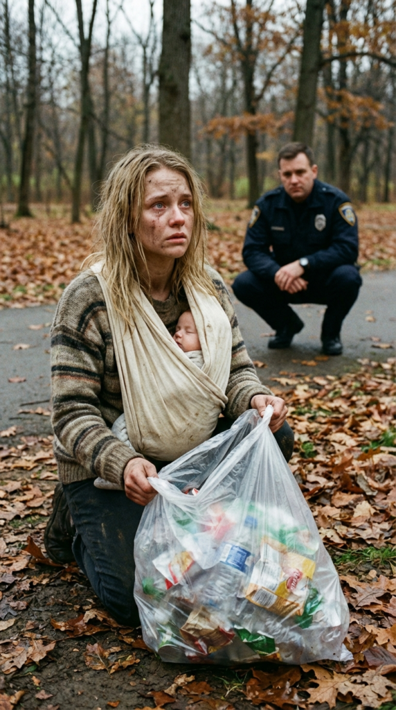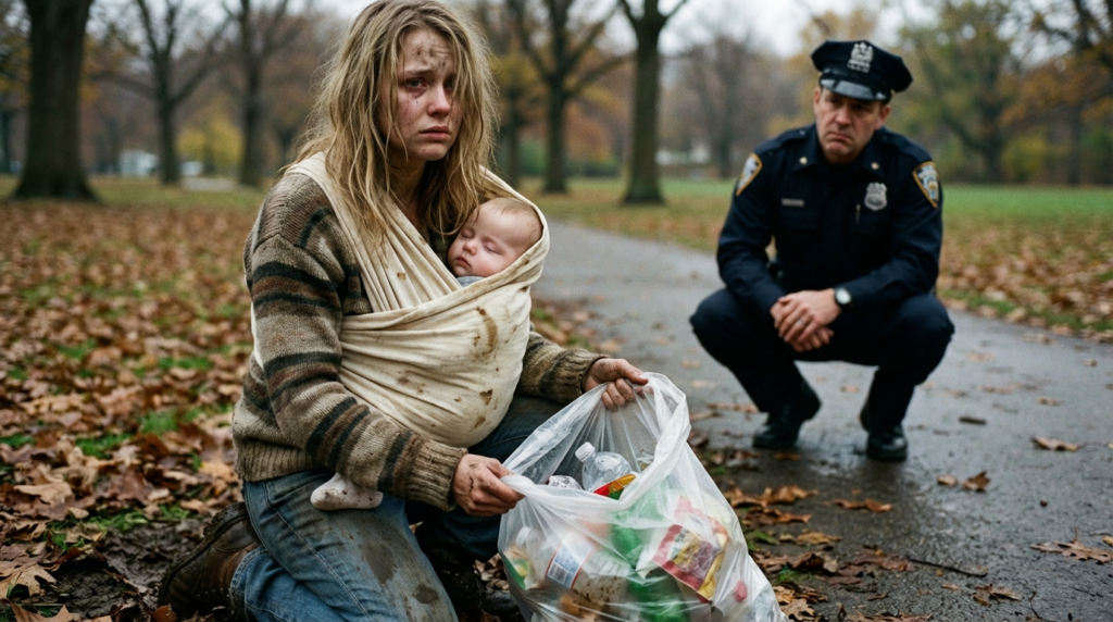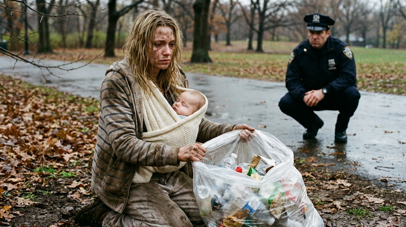 I was seven years old, kneeling in the dirt behind the park benches, my hands black with filth as I dug through a torn garbage bag. My baby sister Emma was strapped to my chest in a makeshift sling I’d made from an old curtain, her tiny body warm against mine, sleeping through the hunger that gnawed at both of us.