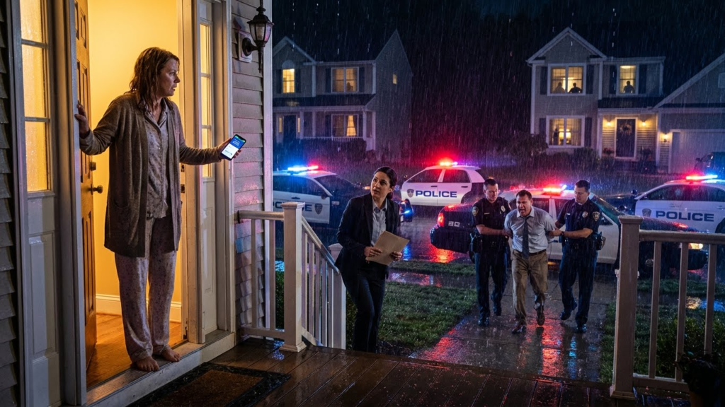 “Mrs. Patterson,” Detective Chen said quietly while her partner led Mark toward the squad car, his voice still echoing protests into the rainy night. “You might want to come down to the station tomorrow morning. We have quite a bit of evidence we need to discuss with you regarding your husband’s activities.”