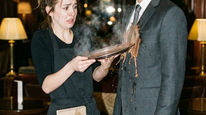 It happened in slow motion. I tripped over the uneven Persian rug in the VIP lounge of The Sterling Hotel, and the entire silver tray—loaded with three steaming mugs of artisan hot chocolate and a pot of coffee—went airborne.