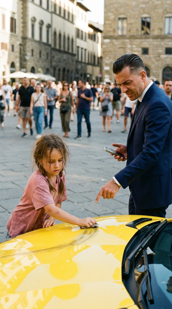 The grease from her sleeve didn’t clean it. It left a long, oily, grey smear across the mirror-perfect yellow finish. It looked like a scar on the sun.