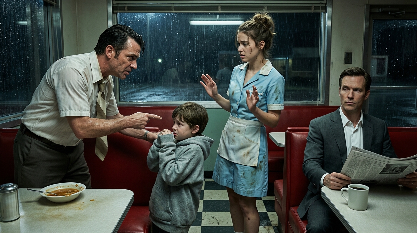 Mr. Henderson’s voice cracked like a whip across the silent diner. It was 9:45 PM on a Tuesday, usually the quietest hour at The Silver Spoon. The dinner rush was over, the grill was being scraped down, and the only sound left was the hum of the refrigerator and the soft, heartbreaking sobbing of a seven-year-old boy in booth six.