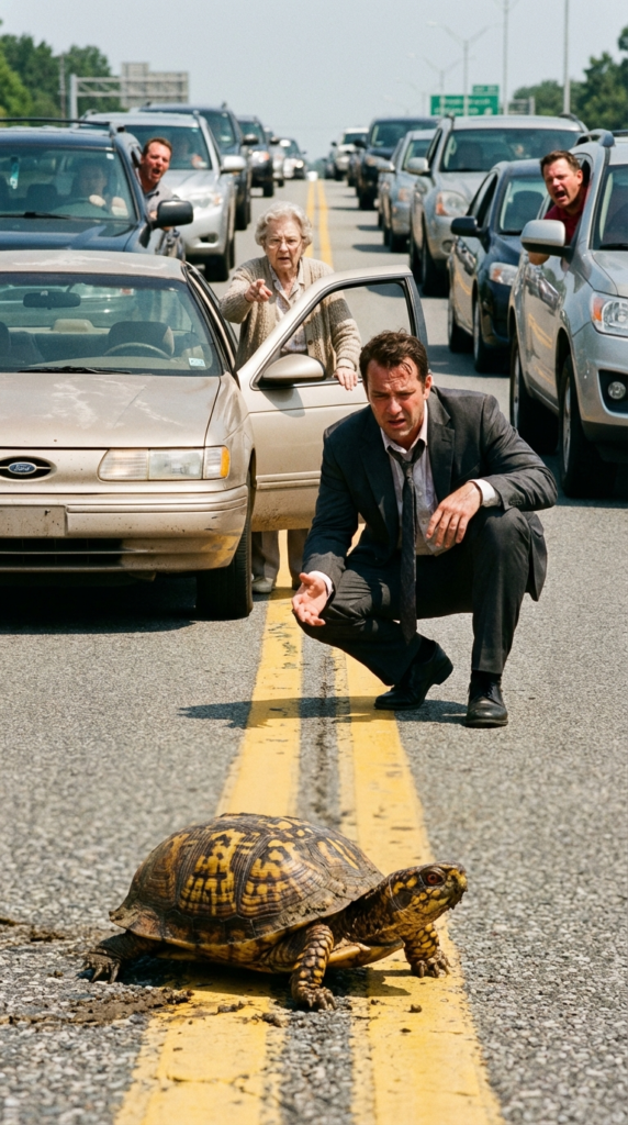 There, inching across the double yellow line, completely terrified by the vibration of the idling engines, was a box turtle. It was no bigger than a hamburger, its shell scarred and muddy. It had tucked its head in, freezing in the face of the mechanical giants surrounding it.